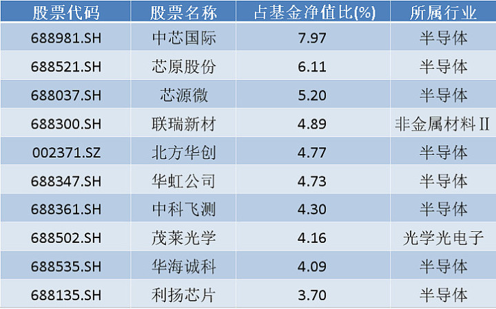 在投资方向上,诺安研究优选聚焦于国内人工智能(AI)与半导体产业。从公布的持仓来看,基金基本是围绕半导体行业布局的,覆盖了整个产业链,从上游的材料、设备,到中游的制造,再到芯片设计,非常的全面。